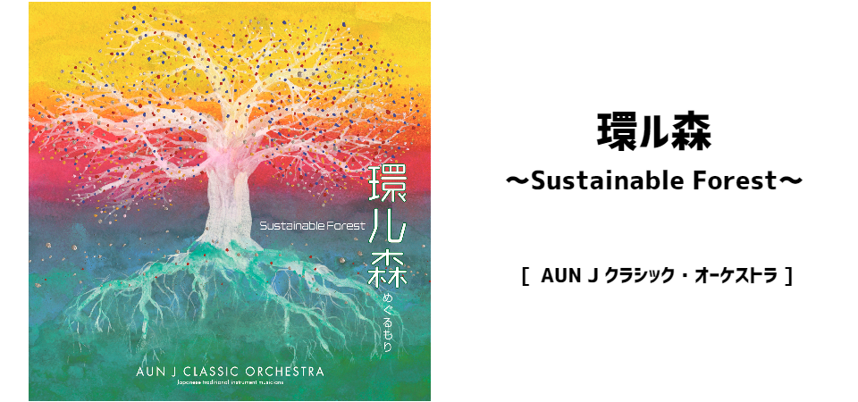 AUN J12枚目のオリジナルアルバム。「森」の持つ様々な顔をテーマに、メンバー全員が1曲づつ作曲した7曲に、2019年の世界遺産奉納ライブで共演した「H ZETTRIO」参加楽曲「FOREST」、ドキュメンタリー映画「うみやまあひだ~伊勢神宮の森から響くメッセージ~」エンディングテーマ曲「GIFT」を、コンサート、テレビでも活躍中の女性ボーカリスト小柳ゆきが作詞、歌入れされた1曲を加え、計9曲を収録。ジャケットデザインは、障がい者アートの「パラリンアート」の中から、今回のアルバムのコンセプトにぴったりな、志方弥公さんの「夢のなる木」を選ばせていただきました。